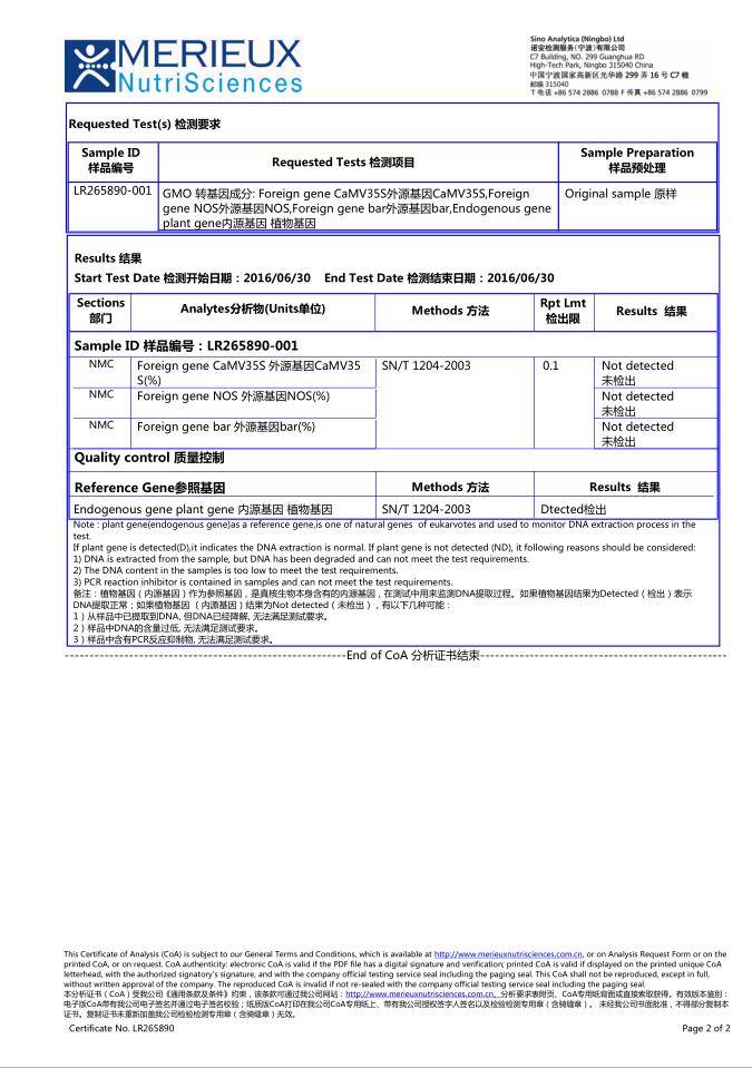 非转基因检测报告