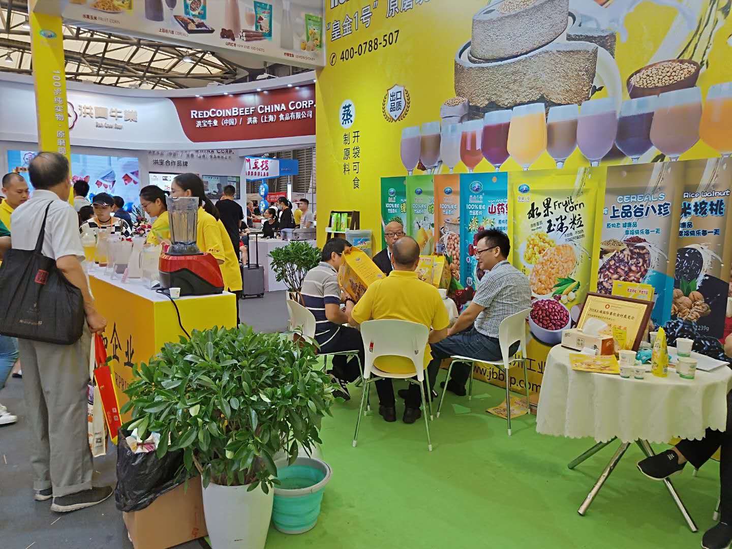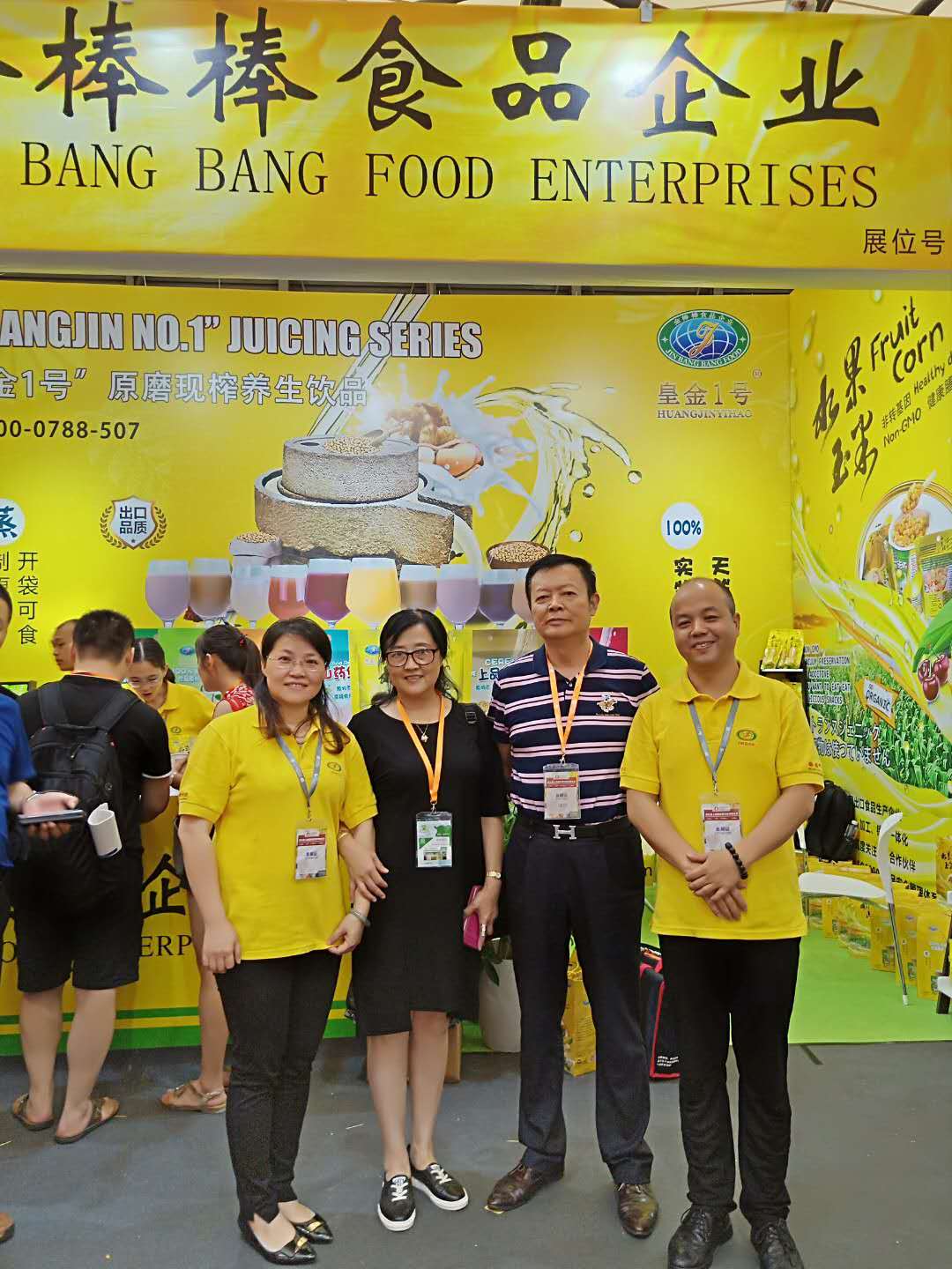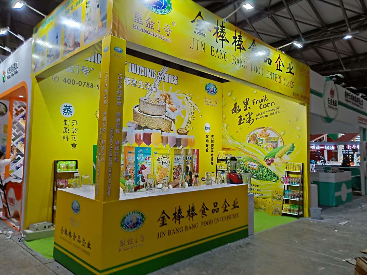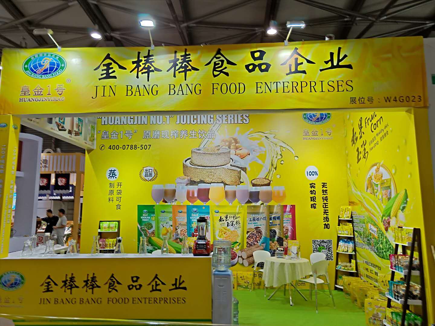 金棒棒食品企业在上海新国际博览中心参加2018第九届上海国际餐饮食材博览会,现场展示皇金1号水果玉米系列及原磨现榨系列产品,展位位于W4G023.