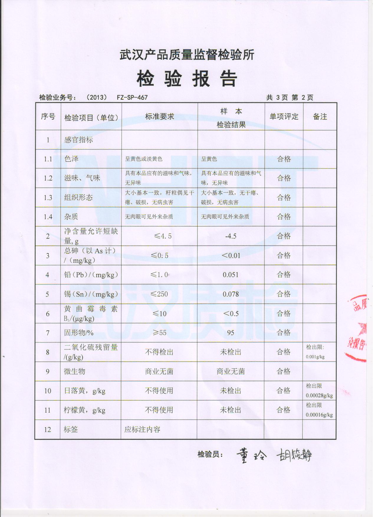 武汉产品质量监督检验所检验报告