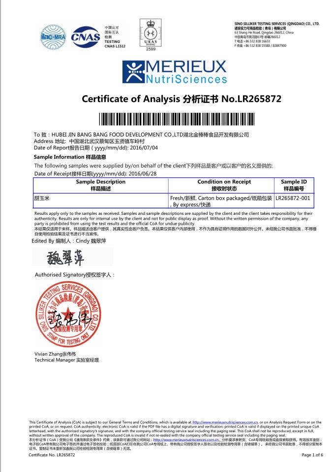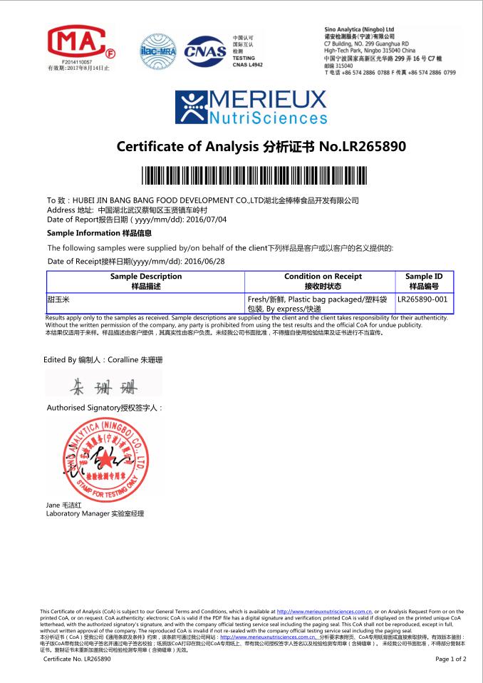 玉米罐头检验报告